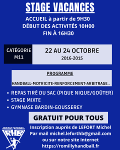 Si vous souhaitez inscrire votre enfant au stage du RHB